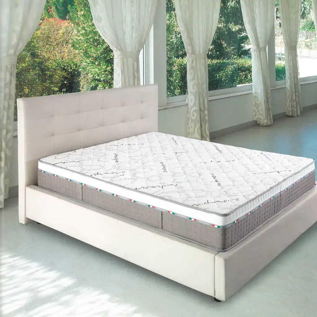 Struttura: 192 molle nella versione singola 384 nella versione matrimoniale, biconiche in acciaio fosfatato C70, temperate elettricamente, rinforzo perimetrale in speciale poliuretano espanso ad alta portanza di doppio spessore.